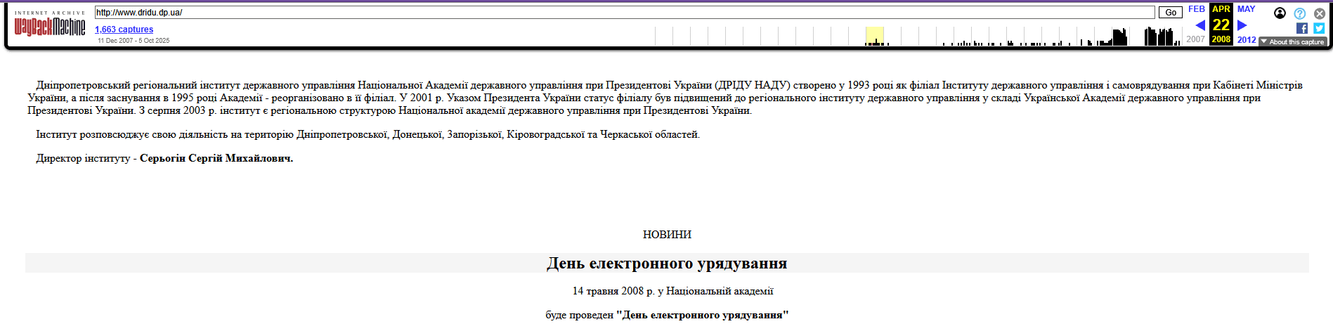 Дніпропетровського регіонального інституту державного управління