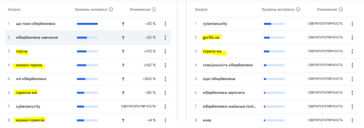 🥇 1. Google-тренди, де кібербезпека живе поруч з… казино
