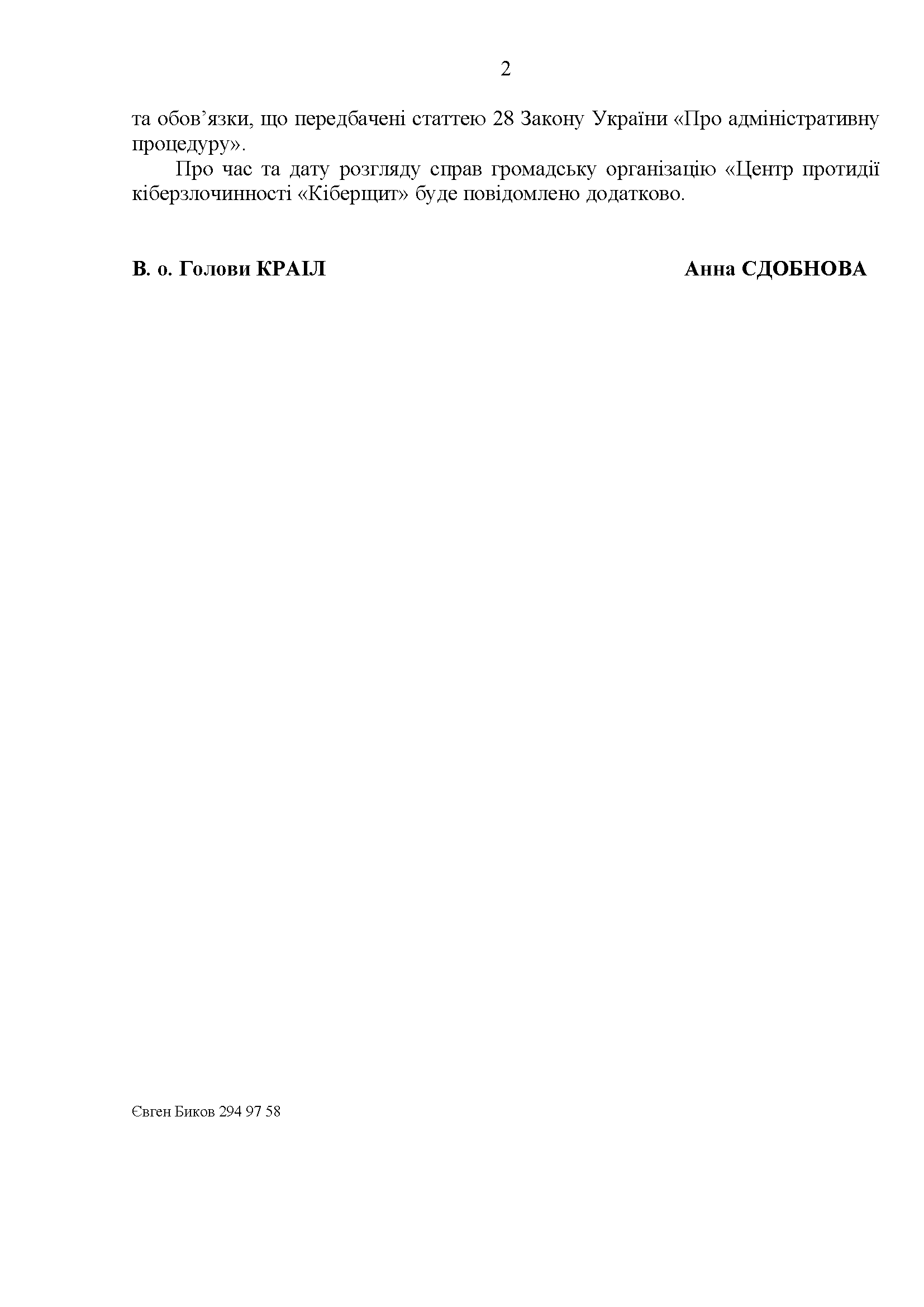 Про час та дату розгляду справи ГО «ЦПК Кіберщит» буде повідомлено додатково.